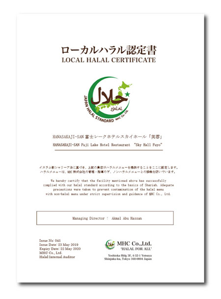 富士レークホテルでは、ローカルハラル認証を取得しております。また、私たちは職員がムスリム旅行者の皆様に快適にお過ごし頂けるよう、様々な教育を行っております。